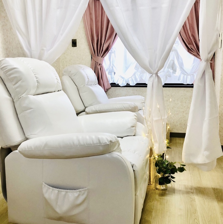 大変ご好評いただいております美容点滴・美容注射の施術室です。フワフワのリクライニングソファで身体も心もリフレッシュしていただけます。